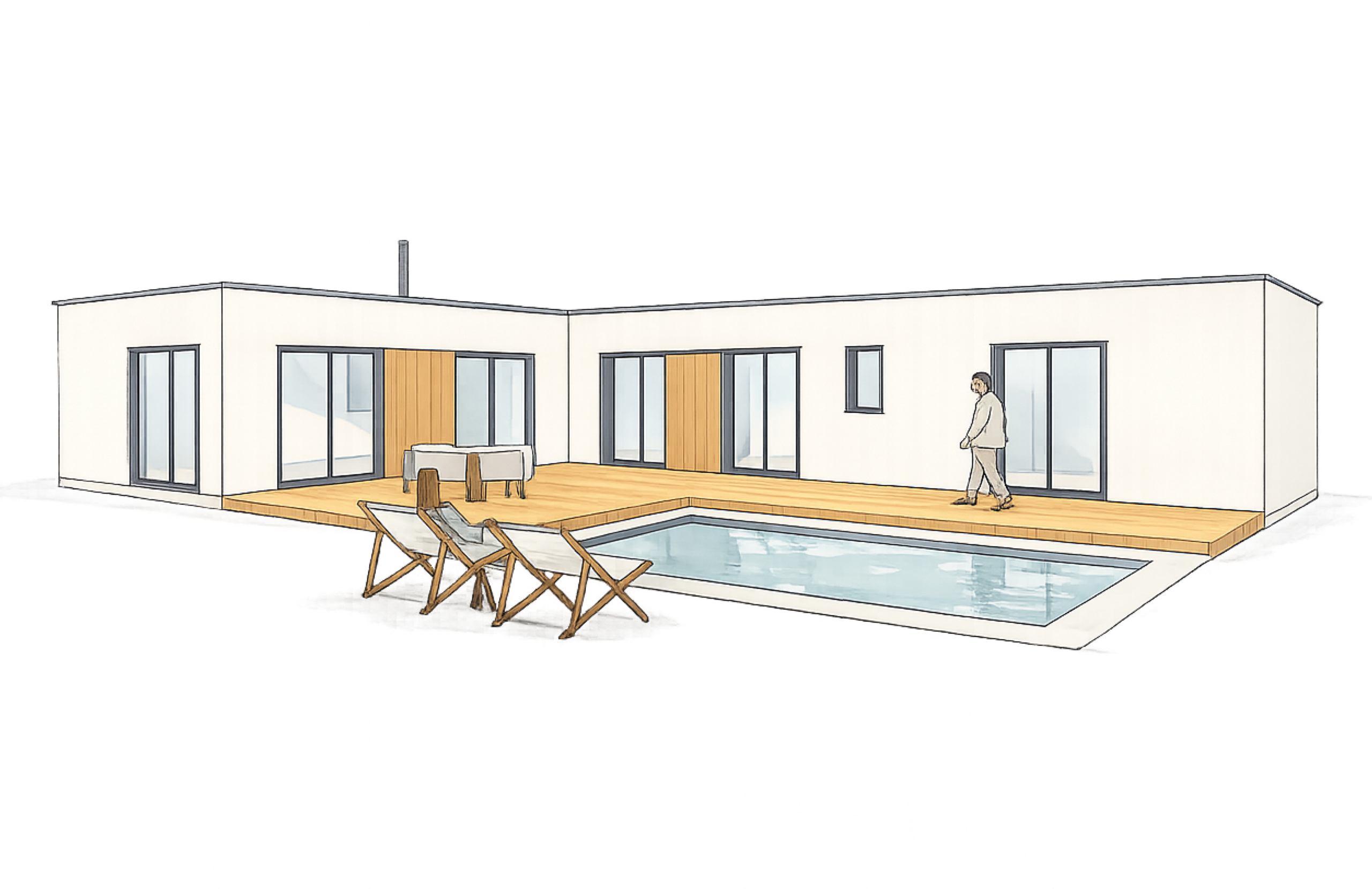 Design ModulCont vzniká ve spolupráci s architekty jako soudobá, moderní a demontovatelná stavba, usazená na betonových pilířích. Dům je ideálně doplněn venkovní terasou, která rozšiřuje obytný prostor a zvyšuje komfort užívání. Vybavení je navržené jako moderní a účelné, s důrazem na promyšlené detaily, originální řešení a precizní zpracování. Používáme soudobé materiály, trvanlivé a nadčasové povrchy.